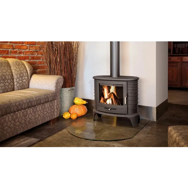 Печь изготовлена из высококачественного чугуна толщиной 8мм. Выдвижной зольный ящик и съемный чугунный колосник облегчают удаление золы и чистку. Стекло дверцы передаст всю красоту живого огня и при этом всегда останется чистым, благодаря специальной системе обдува.