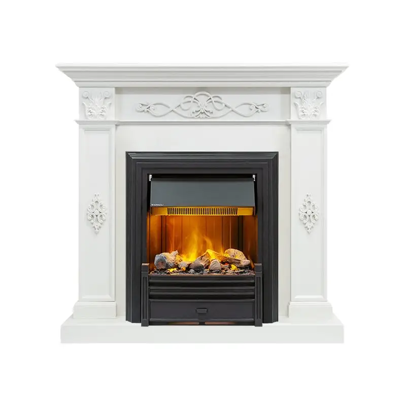 Боковые части портала Derby сделаны в виде колонн, которые поддерживают ступенчатую крышку. Цвет портала подобран из лимитированной палитры цветов «Old Silver». По центру фронтона расположен изящный узор. К порталу подходят классические очаги Dimplex серии Opti-Myst с эффектом «живого» пламени. Кронштейны украшены декоративной лепниной.Пламя электрического очага с эффектом реального пламени создает неповторимую атмосферу тепла и уюта. В очаге предусмотрена возможность включения пламени без режима обогрева, что позволит наслаждаться ярко пылающим камином даже летом. Мощность обогрева: 2 кВт. Уникальность пламени Opti-Myst заключается в его стопроцентной реалистичности: для создания эффекта пламени используется встроенный ультразвуковой парогенератор. Вода заливается в специальный выдвигаемый резервуар, удобно расположенный под муляжом дров, из которого, при помощи парогенератора, выходит в виде пара. Клубы пара подсвечиваются галогеновыми лампами со специальным светофильтром. Подсветка работает таким образом, что снизу пар, поступающий из парогенератора, подсвечивается ярче и воспринимается как огонь, а верхняя часть пара в этом случае становится похожей на дым.