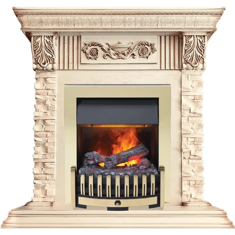 Каминокомплект Dimplex Luxemburg (каменный) - Сланец/Cлоновая кость с патиной с очагом Danville Brass FB2