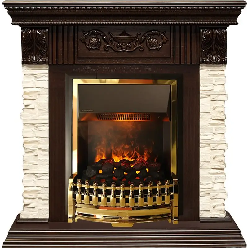Электрический очаг Dimplex Atherton серии Opti-Myst с эффектом реального пламени. Этот стильный классический очаг в обрамлении золотого цвета предназначен для встраивания в порталы, выполненные в классическом стиле.