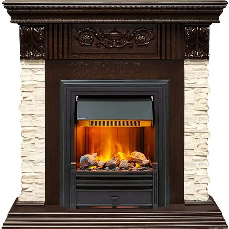 Каминокомплект Dimplex Luxemburg (каменный) - Сланец/Темный дуб с очагом Brookline Black