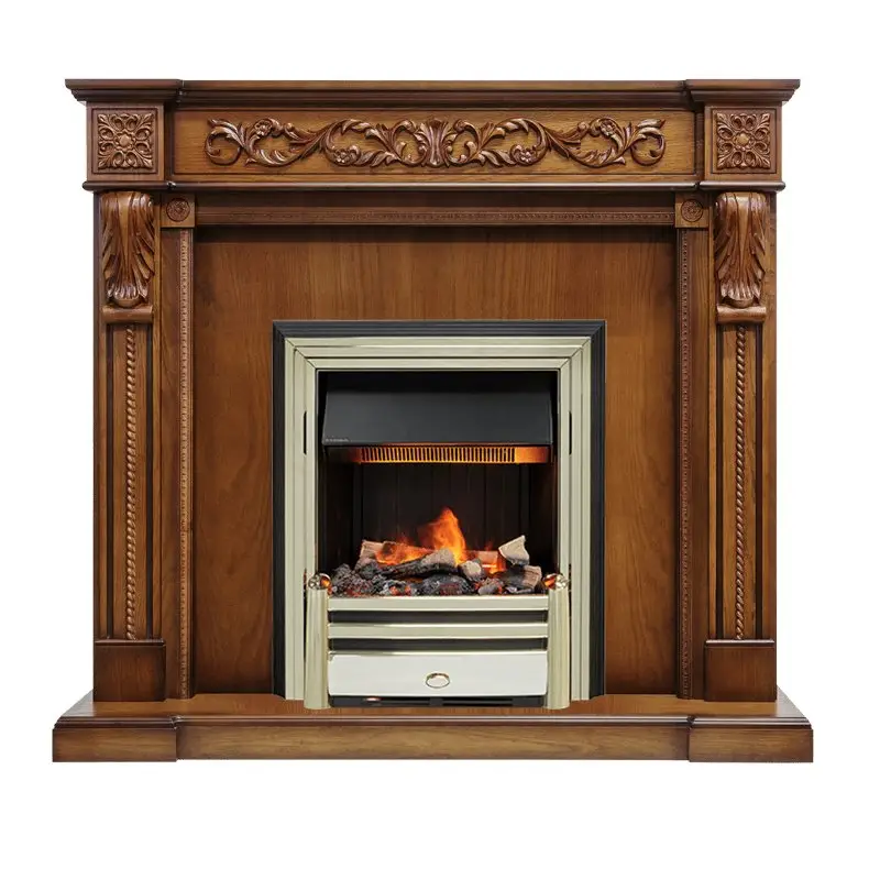 Классический портал в цвете «античный дуб» прекрасно подойдет практически к любому интерьеру, благодаря дизайну со строгими классическими формами. Изящная лепнина, колонны и резные кронштейны дополняют общую картину и подчеркивают красоты каминного комплекта.