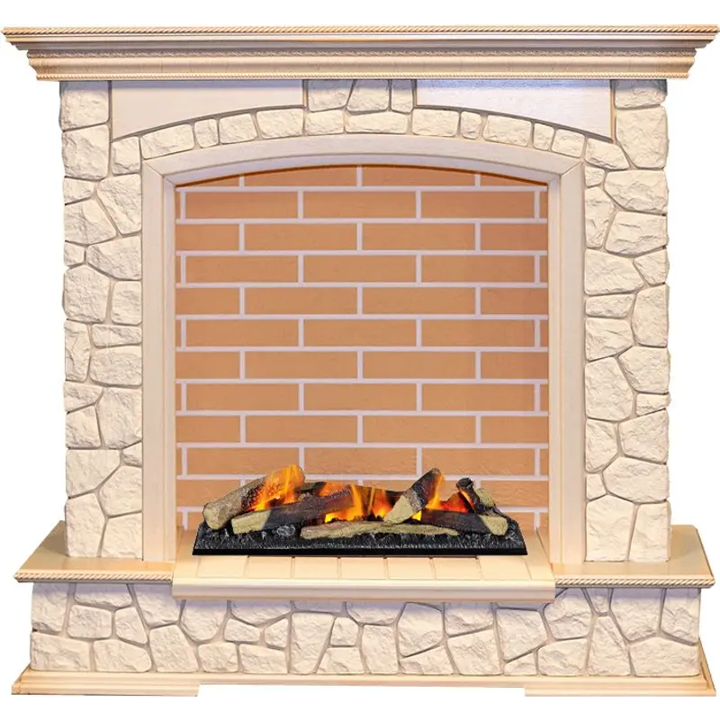 Каминокомплект Dimplex Preston - Слоновая кость с патиной / Кирпич с очагом Cassette 600 LNH-INT (с дровами)