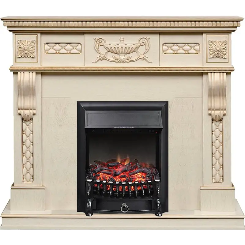 Каминокомплект Royal Flame Corsica - Слоновая кость с патиной (Ширина 1100) с очагом Fobos FX Black