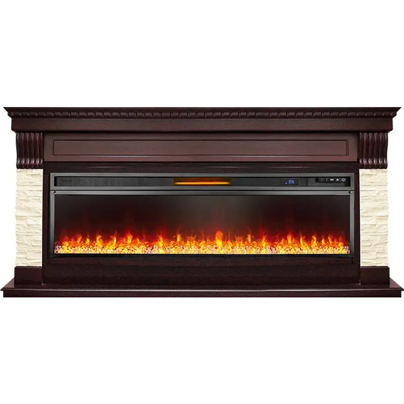 В очаге 6 ступней обогрева, 4 уровня регулировки пламени и 4 варианта цветовых решений для подсветки кристаллов. Модель оборудована пультом ДУ, который поставляется в комплекте с очагом.