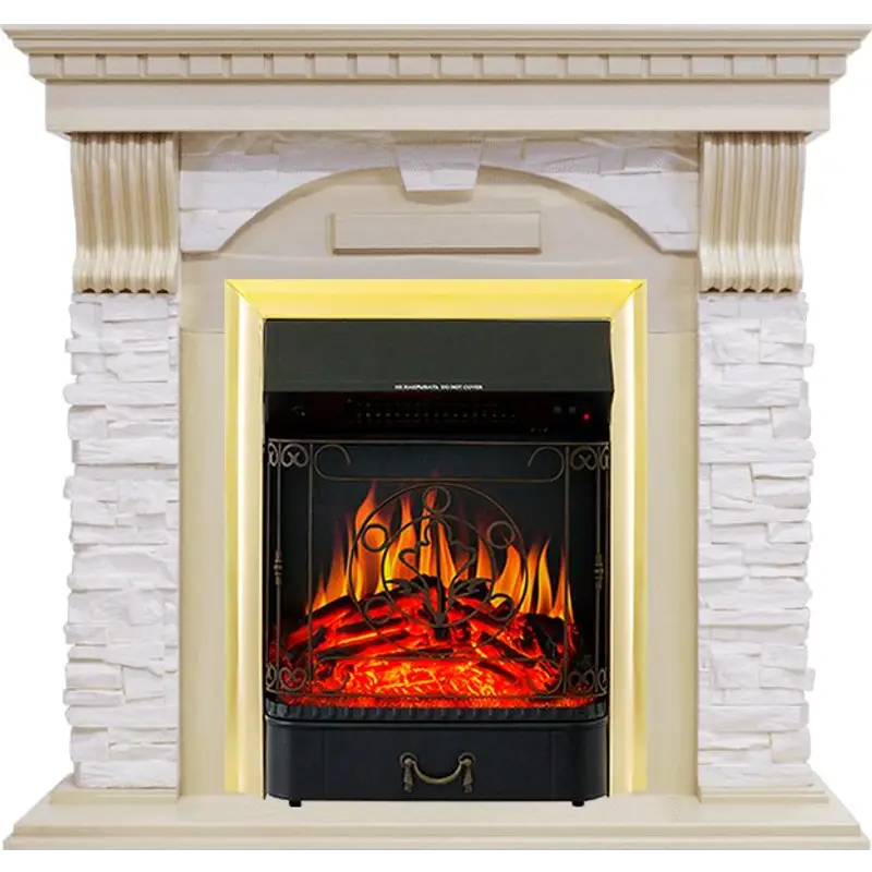 Каминокомплект Royal Flame Dublin - Слоновая кость с патиной / Сланец крем с очагом Majestic FX Brass