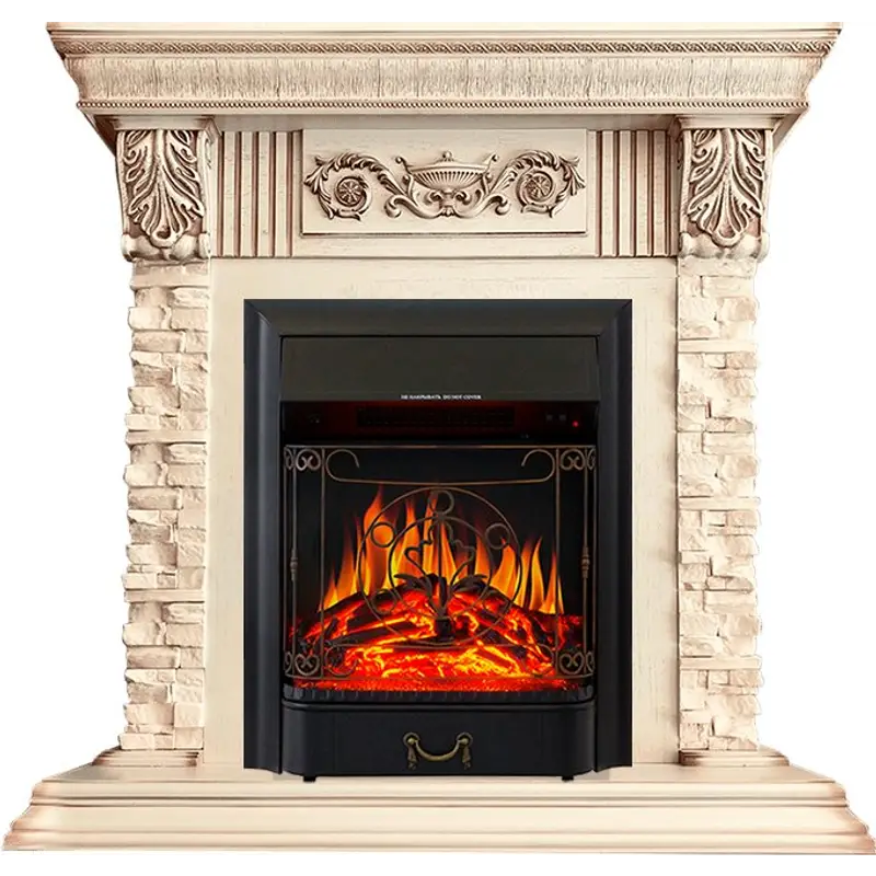 Каминокомплект Royal Flame Luxemburg (каменный) - Сланец/Cлоновая кость с патиной с очагом Majestic FX Black