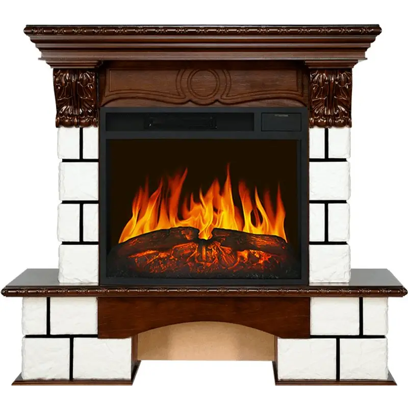 В качестве декоративного топлива в очаге используются реалистичные светодиодные дрова с эффектом мерцания. Игра огня в топке сопровождается звуковой имитацией потрескивания дров.