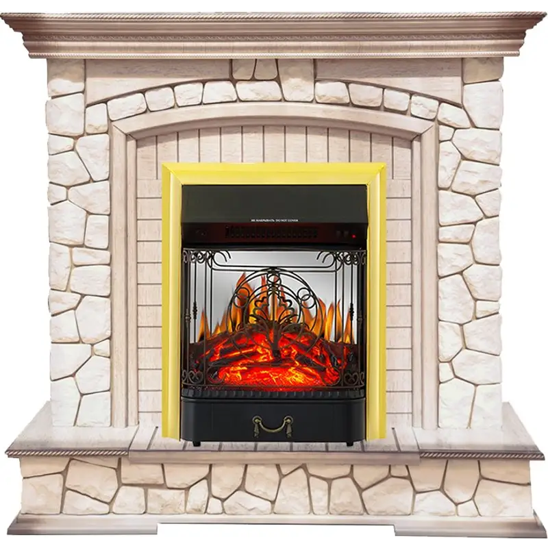 Каминокомплект Royal Flame Preston - Белый/Слоновая кость с патиной с очагом Majestic FX M Brass