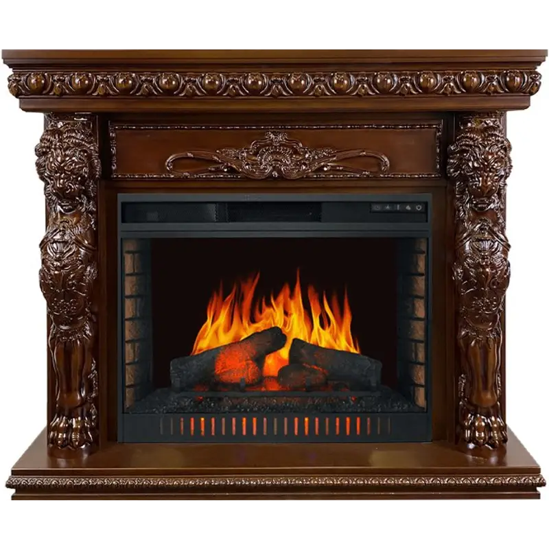 Портал Windsor – элегантная модель с богатым ярким декором, выполненная из высококачественных материалов. Колонны украшены образами необычных мифических существ с львиными головами, размещенными фронтально. Зона над очагом декорирована изысканным резным орнаментом.