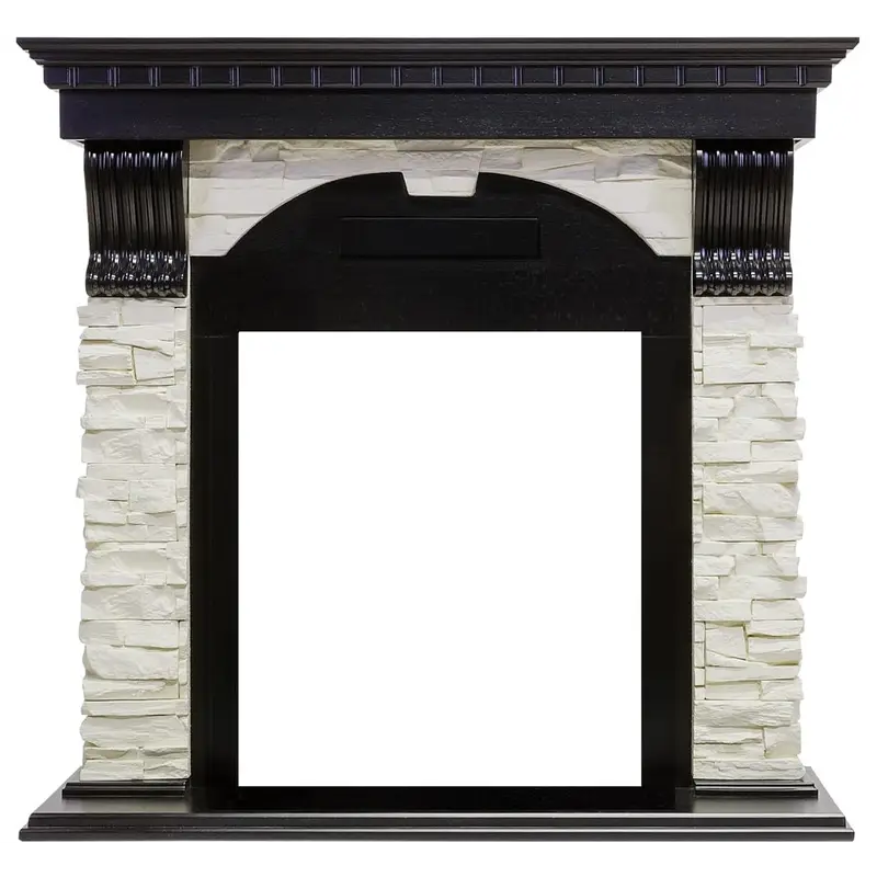Портал Dublin выполнен в классическом стиле с античными элементами. Боковые колонны из светлого камня, стилизованного под натуральную сланцевую породу, дополнены резными узорами контрастного цвета. Столешница и постамент выполнены из дерева. Такое сочетание материалов подчеркивает изысканность портала и делает его выгодным приобретением для практических любых интерьеров.