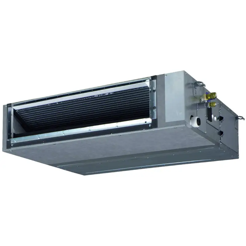 Канальные средненапорные сплит-системы Daikin имеют самый тонкий внутренний блок в данном классе. Благодаря компактному теплообменнику, двигателям постоянного тока вентилятора и дренажного насоса значительно снижено энергопотребление. Внешнее статическое давление до 150 Па позволяет осуществлять кондиционирование удалённых помещений при использовании воздуховодов. Cплит-системы Daikin способны работать и на хладагенте R-410A, и на R-32. Они имеют высокое значение коэффициента сезонной эффективности.