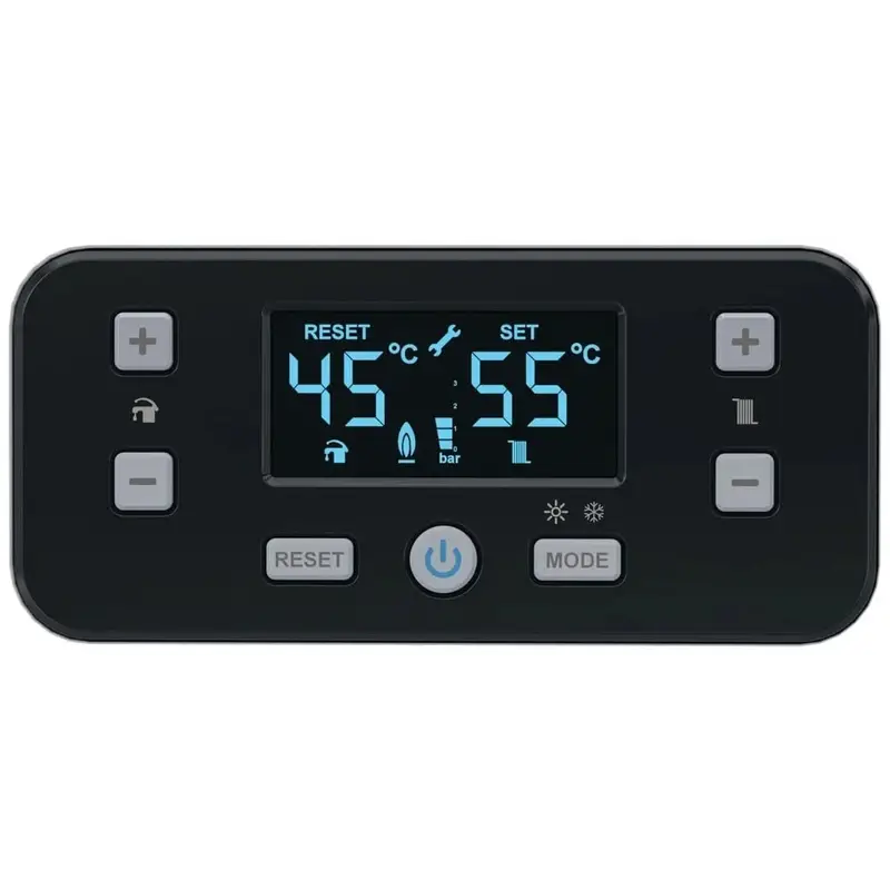 - Эргономичный ЖК-экран с отображением органов управления и функций котла