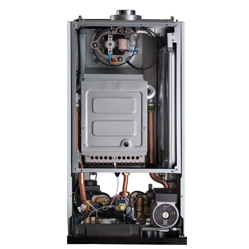 - Два раздельных теплооменника: первичный из меди с защитным покрытием и вторичный из нержавеющей стали