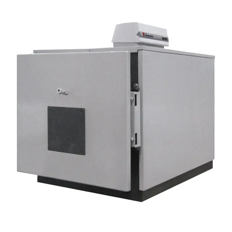- Корпус котла с 2-х ходовой камерой сгорания, полностью изолированной внешним слоем из стекловолокна толщиной 80 мм