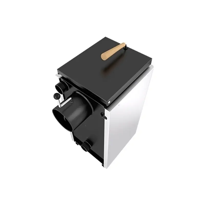 - простота конструкции – загрузка топлива осуществляется через специальное отверстие в верхней части корпуса, что значительно упрощает пользование котлом. Его работа не требует дополнительного применения вентиляторов, компрессоров и другого оборудования, обеспечивающего принудительное дымоудаление или тягу, что исключает потребление электроэнергии и значительно упрощает монтаж устройства;