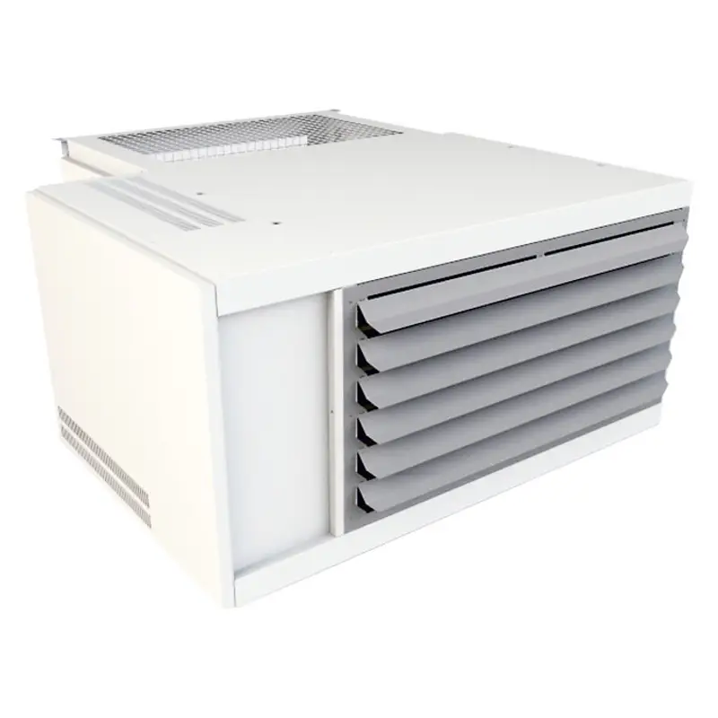 - Оснащены центробежным вентилятором и поставляются со шкафом для смешивания воздуха и патрубком для подключения к воздуховодам.