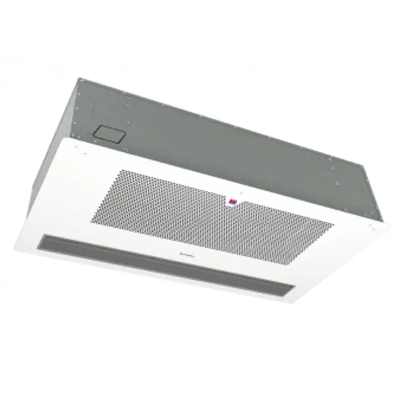Встраиваемая потолочная воздушно-тепловая завеса для проёмов высотой до 3,5 метров. Тепловая завеса предназначена для скрытой установки за подвесным потолком. Сервис и обслуживание осуществляется через переднюю панель завесы.