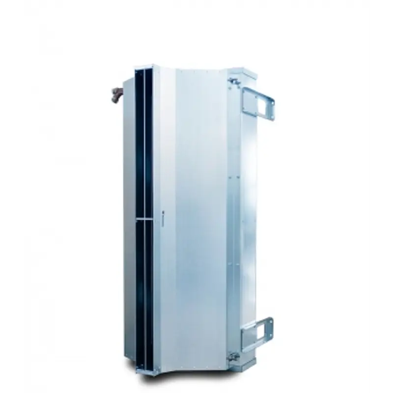 Тепловая завеса IP54 с повышенной коррозионной стойкостью для проемов высотой от 3 до 6 метров в помещениях с атмосферой, содержащей капельную влагу, например, в автомойках. Водяная тепловая завеса IP54 изготавливается с соплом под углом 30° (под заказ).
