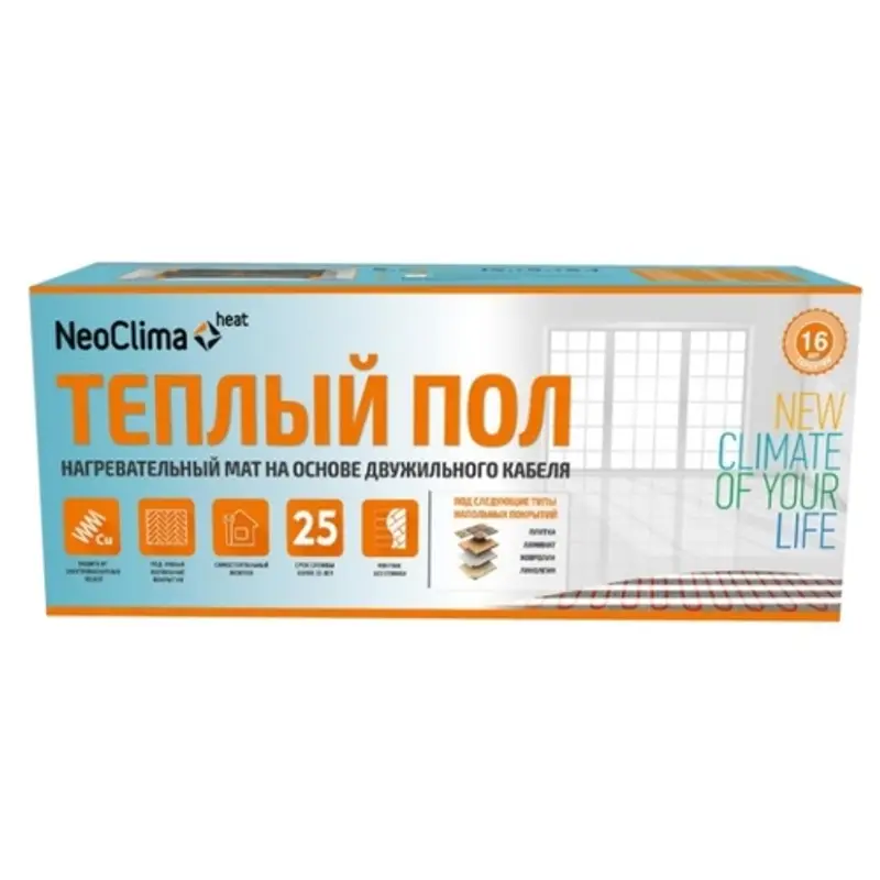 Мощность: 1.01 кВт, Тип: нагревательный мат, Дополнительная информация: монтаж под плиточный клей, Срок службы: 1 г., Назначение: под ламинат, под линолеум, под ковролин, под паркет, Номинальное напряжение: 230В, Огнеупорность (самозатухание): есть, Приведенная потребляемая мощность: 910 Вт, Тип кабеля: Двухжильный, Удельная мощность: 130 Вт/м², Экранированный: да, Страна: Греция, Площадь помещения, м2: 7, Ширина, см: 50, Вес, кг: 5, Длина, см: 1400, Максимальная площадь обогрева, м²: 7, Гарантийный срок: 1 год На официальном сайте интернет-магазина SDM Climate Вы найдете большой ассортимент климатического оборудования для квартиры, дома или офиса, в том числе Нагревательные маты. Купить товар Нагревательный мат NeoClima N-TM 1050/7.0 (производство NeoClima) можно из наличия или под заказ с доставкой и установкой по Москве, Московской области, также в регионы РФ. Возникли вопросы при выборе? Наши специалисты подберут оборудование по цене, производительности и характеристикам +7 (495) 320-00-44