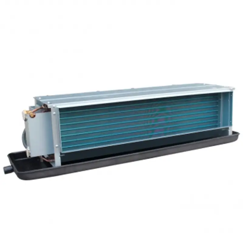 Канальные фанкойлы серии КЭВ-ФКН горизонтального типа с 2-х трубным теплообменником предназначены для скрытой установки между подвесным потолком и перекрытием. Фанкойл незаметен в интерьере, видны только решетки для подачи и забора воздуха. Высота фанкойла 240 мм позволяет разместить блок в узком пространстве. Свободный напор 50 Па. Три скорости вращения вентилятора.