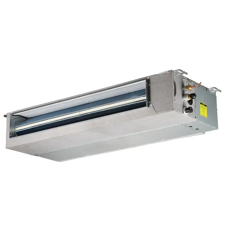 Канальные внутренние блоки позволяют создать комфортный микроклимат сразу в нескольких помещениях. Они монтируются в систему подвесных потолков, а обработанный воздух доставляется в кондиционируемые помещения по воздуховодам. Скрытый способ монтажа позволяет обеспечить первозданный вид любой дизайнерской идеи интерьеров. Благодаря снижению турбулентности воздушного потока на выходе из блока, удалось обеспечить пониженные показатели уровня шума — от 32 дБ. Такое оборудование особенно рекомендовано для гостиниц.