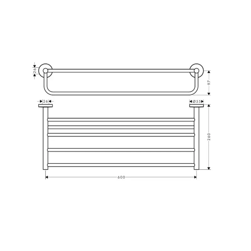 Полка, Hansgrohe, Logis Universal, с полотенцедержателем, ширина, мм-600, глубина, мм-260, форма-прямоугольная, тип установки-настенный, материал-латунь/металл, цвет-хром