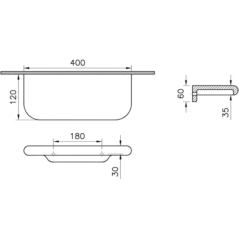 Полка, Vitra, Liquid, тип установки-настенный, ширина,мм-400, глубина, мм-120, высота, мм-60, материал-керамика, цвет-белый