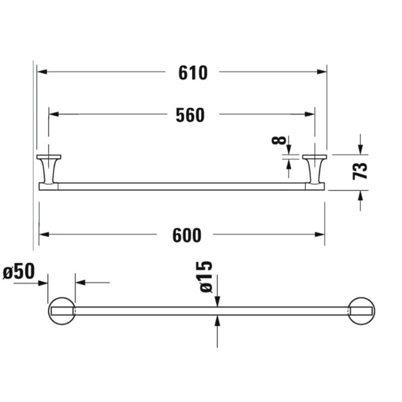 Полотенцедержатель, Duravit, Starck T, одинарный, ширина, мм-610, глубина, мм-73, высота, мм-50, тип установки-настенный, материал-металл, цвет-хром