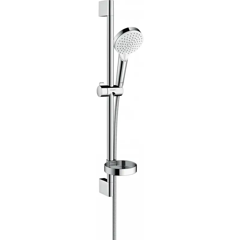 Душевой гарнитур, Hansgrohe, Crometta Vario, размер штанги, мм-650, размер шланга, мм-1600, диаметр ручного душа, мм-100, количество режимов-2, тип струи-Rain, Intense Rain, комплектация-мыльница, цвет-белый/хром
