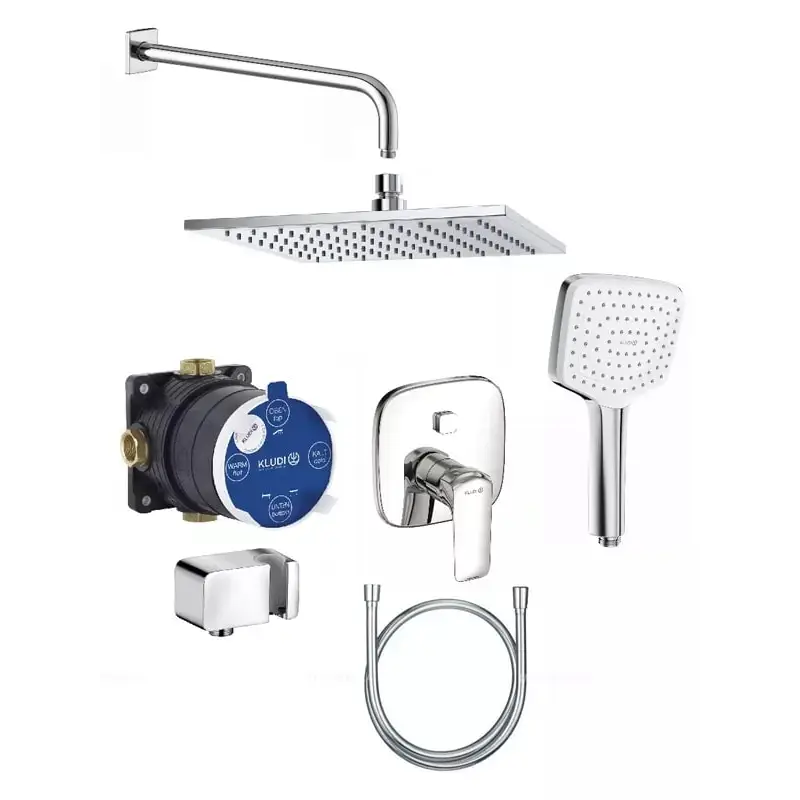 Душевой комплект, Kludi, Ameo, 7 в 1, в составе-смеситель для душа арт. 416590575, внутренняя часть FLEXX.BOXX арт. 88011, верхний душ 250*250 мм арт. 6442505-00, держатель верхнего душа арт. 6653405-00, ручной душ Freshline, 1S арт. 6450005-00, шланг для душа 1250 мм арт. 6107105-00, шланговое подсоединение с держателем арт. 6556005-00, цвет-хром