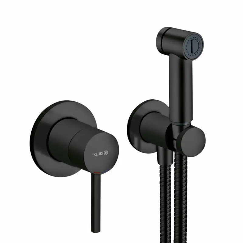 Гигиенический душ, Kludi, BOZZ, "модерн" с кнопкой включения воды, встраиваемый смеситель с внутренней частью-в комплекте, шланг-есть, длина шланга, мм-1250, держатель со шланговым подсоединением DN15-в комплекте, материал-латунь, цвет-чёрный матовый