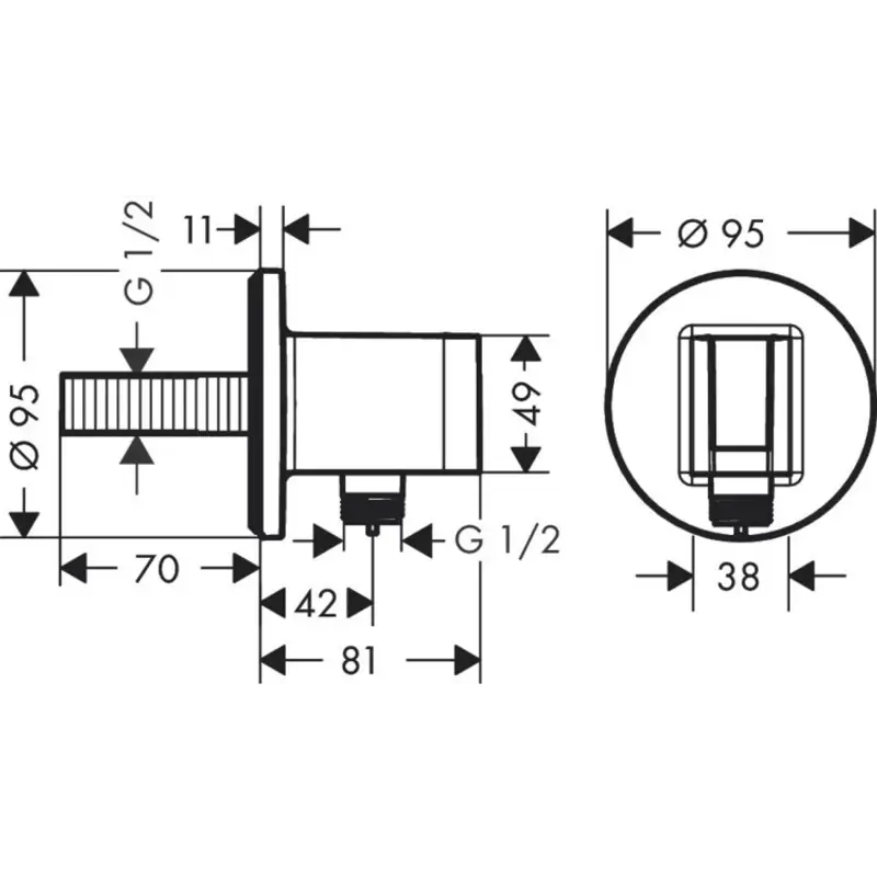 Шланговое подсоединение, Hansgrohe, Fixfit S, держатель-есть, со встроенным обратным клапаном, с подключением для душевого шланга, декоративная накладка, резьбовое соединение, стандарт подвода воды-1/2", цвет-черный матовый