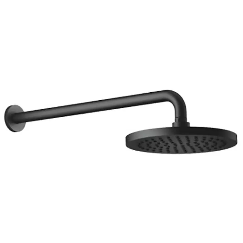 Верхний душ, Dornbracht, Series specific, тип установки-настенный, размер душевого диска, мм-220*220, форма-круглая, количество режимов-1, тип струи-дождь (Rain), держатель-в комплекте, размер держателя, мм-450, цвет-черный матовый