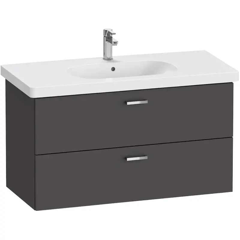 Тумба под раковину, Duravit, XBase, ширина, мм-1000, глубина, мм-458, высота, мм-560, тип установки-подвесной, форма мебели-прямоугольная, раковина-необходимо заказать, ящики-2, открывание-выдвижное, цвет-графит матовый