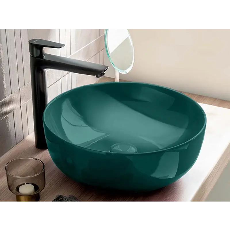 Раковина, CIELO, Le Bacinelle, ширина, мм-400, глубина, мм-400, высота, мм-150, тип установки-на столешницу, отверстия для смесителя-отсутствуют, материал-керамика, цвет-Smeraldo