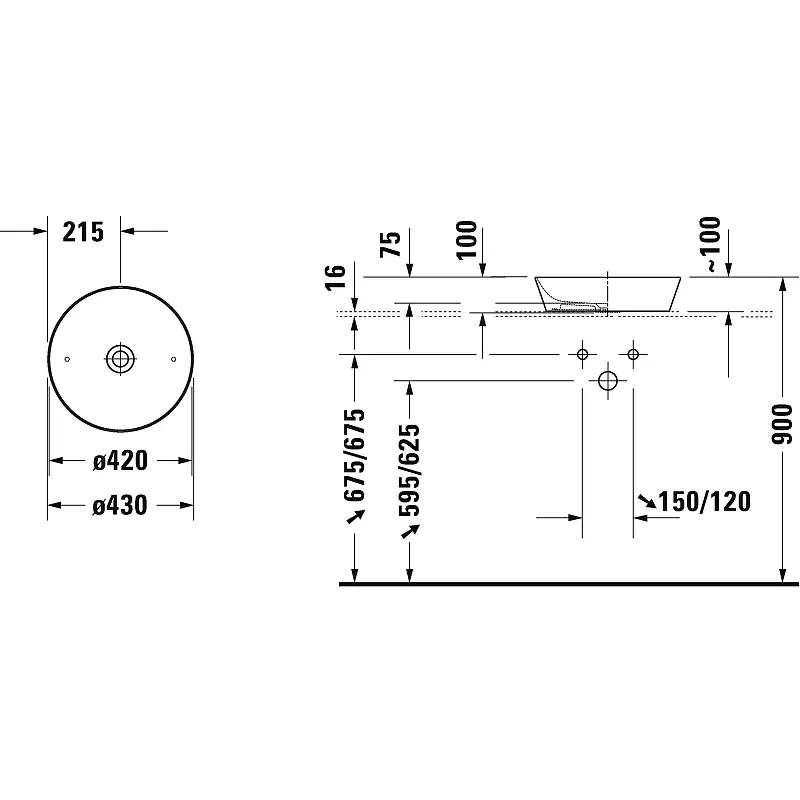 Раковина, Duravit, Cape Cod, ширина, мм-430, глубина, мм-430, высота, мм-100, тип установки-накладной, отверстия для смесителя-отсутствуют, без декора, материал-керамика, цвет раковины-белый глянцевый