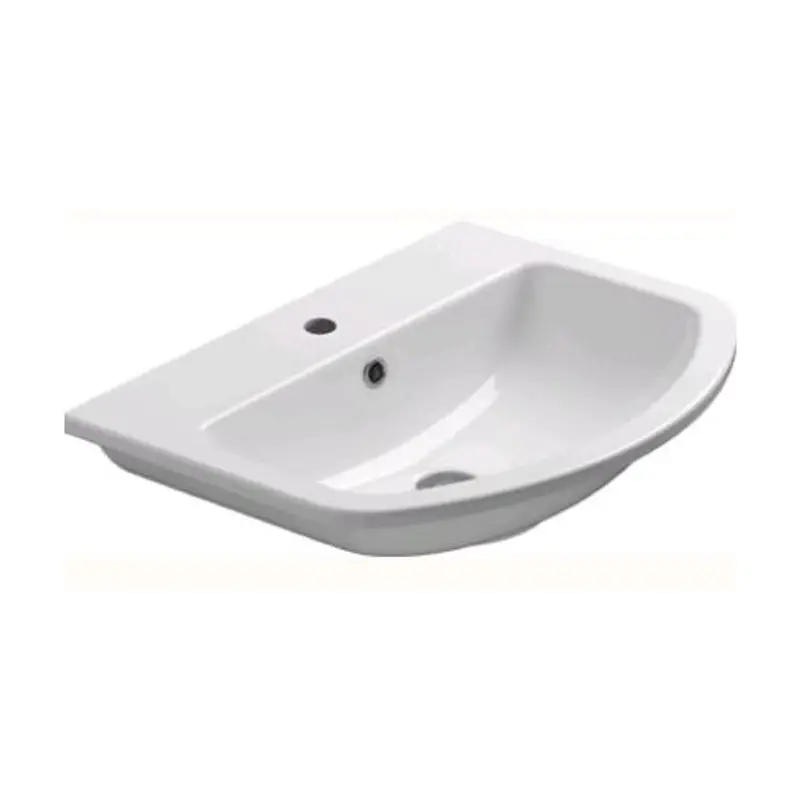 Раковина, GSI, City, ширина, мм-580, глубина, мм-450, высота, мм-185, тип установки-встраиваемый/подвесной, отверстия для смесителя-1, перелив-есть, без декора, материал-керамика, вид грязеотталкивающего покрытия-Extraglaze, без креплений, цвет раковины-белый глянцевый