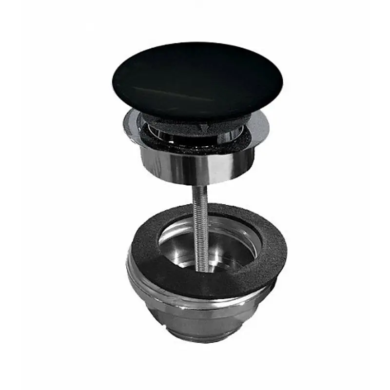 Донный клапан, Scarabeo, для раковин, нажимной Click Clack, 1 1/4", форма крышки-круглая, диаметр крышки, мм-72, материал клапана-латунь, цвет клапана-хром, материал крышки-керамика, цвет крышки-Ardesia