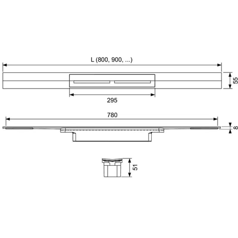 Дренажный канал, TECE, TECEdrainprofile, ширина, мм-55, длина, мм-1200, высота, мм-51, с уклоном к центру для улучшения слива воды и самоочищения, монтаж-в пол, устанавливается на плиточный клей над бетонной стяжкой и изоляцией, сифон-необходимо заказать, в комплекте-соединительный элемент для подсоединения к сифону, зажимные элементы для простоты установки, декоративная крышка-есть, с функцией нажатия для снятия руками, материал-нержавеющая сталь, цвет крышки-хром матовый