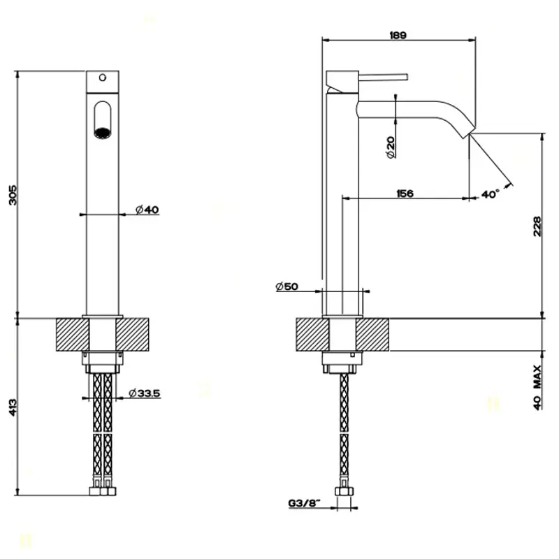 Смеситель для раковины, Gessi, Flessa, тип открывания воды-однорычажный, тип регулирования воды-керамический картридж, монтаж-на раковину/столешницу, отверстия для монтажа-1, высота, мм-305, вынос излива, мм-156, тип излива-неподвижный, донный клапан-отсутствует, тип подводки-гибкая, стандарт подвода воды-3/8", цвет-Steel Brushed