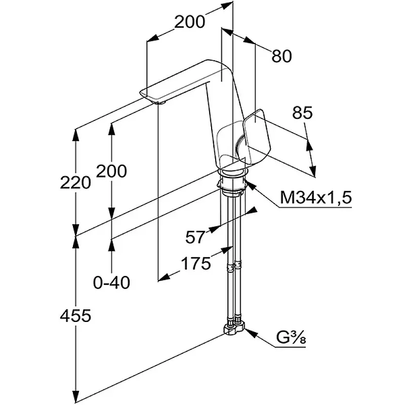 Гибкая подводка: G 3/8.