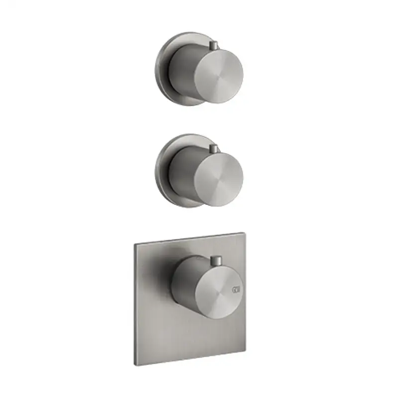Смеситель для душа, Gessi, 316 WELLNESS, тип открывания воды-вентильный, тип регулирования воды-термостатический картридж, монтаж-настенный встраиваемый, отверстия для монтажа-3, внутренняя часть-необходимо заказать, цвет-Steel Brushed, подключение на 3/4", с вертикальной/горизонтальной установкой, с 2-мя независимыми выходами