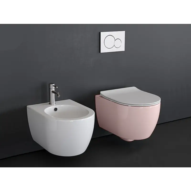 Унитаз, Scarabeo, Moon, безободковый (с открытым смывным краем), тип установки-подвесной, ширина, мм-360, глубина, мм-505, высота, мм-360, форма чаши-овальная, выпуск-горизонтальный, материал-керамика, сиденье-необходимо заказать, без креплений, цвет-Antique pink