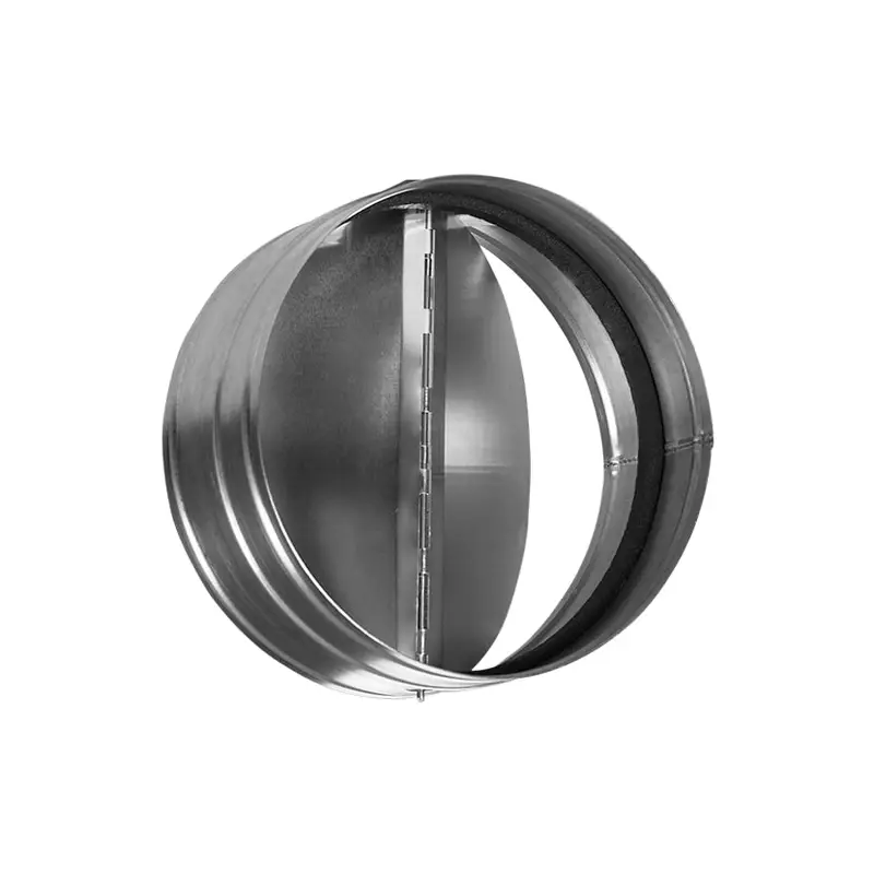 Обратный клапан с подпружиненными лопастями предназначен для автоматического перекрывания круглых воздуховодов при отключении систем вентиляции. Корпус клапана выполнен из оцинкованной стали, лопасти из листового алюминия. Крепление клапана к другим элементам системы вентиляции производится при помощи ниппельного соединения. Клапан может быть установлен в вертикальном положении.