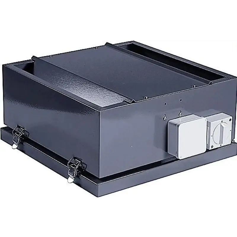 - Крышные вытяжные вентиляторы оборудованы асинхронным двигателем с внешним ротором, рабочим колесом с загнутыми назад лопатками и уплотнёнными подшипниками, что увеличивает срок их службы.