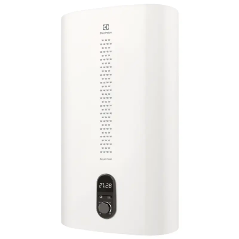 Таймер: Да, Дисплей: Есть, Предохранительный клапан: Да, Режим предотвращения замерзания: Да, Объем: 50 л, Цвет: Белый, Защита от перегрева: Да, Класс пылевлагозащищенности: IPX4, Максимальная температура воды: 75 °С, Количество режимов нагрева: 3, Точность установки температуры: 1, 0 °С, Габариты (ВхШхГ): 0, 97*0, 435*0, 26 м, Область применения: Бытовое оборудование (для домашнего использования), Форма: Прямоугольная, Время нагрева воды до 75°С: 114 мин, Гарантийный документ: Гарантийный талон, Защита от включения без воды: Да, Защита от накипи: Магниевый анод увеличенного размера, Индикация включения: Да, Индикация температуры нагрева: Да, Макс. потребляемая мощность: 2 кВт, Материал бака: Нержавеющая сталь, Набор крепежных элементов в комплекте: Да, Подсветка дисплея: Нет, Расчетное количество человек для принятия душа (при среднем расходе): 2, Регулировка температуры нагрева: Да (механический регулятор), Резьба входного патрубка: 1/2 ", Резьба выходного патрубка: 1/2 ", Серия: Royal Flash, Сетевой кабель с вилкой: Да, Система самодиагностики неисправности: Нет, Система сухих ТЭНов: Нет, Ступени мощности нагрева: 1, 30 / 1, 70 / 2, 00, Система санитарной обработки воды: Bacteria stop system, Страна: Китай, Ширина, см: 26, Высота, см: 97, Вес, кг: 15, 5, Длина, см: 43, 5, Управление: Электронное, Напряжение сети: 220-240 В (однофазный), Вариант монтажа: Вертикальный, горизонтальный, Способ крепления: Настенный, Гарантийный срок: 2 года На официальном сайте интернет-магазина SDM Climate Вы найдете большой ассортимент климатического оборудования для квартиры, дома или офиса, в том числе Накопительные электрические водонагреватели. Купить товар Электрический накопительный водонагреватель Electrolux EWH 50 Royal Flash (производство Electrolux) можно из наличия или под заказ с доставкой и установкой по Москве, Московской области, также в регионы РФ. Возникли вопросы при выборе? Наши специалисты подберут оборудование по цене, производительности и характеристикам +7 (495) 320-00-44