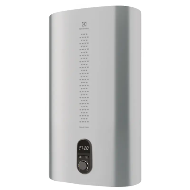Таймер: Да, Дисплей: Есть, Предохранительный клапан: Да, Режим предотвращения замерзания: Да, Объем: 50 л, Цвет: Серый серебристый, Защита от перегрева: Да, Класс пылевлагозащищенности: IPX4, Максимальная температура воды: 75 °С, Количество режимов нагрева: 3, Точность установки температуры: 1, 0 °С, Габариты (ВхШхГ): 0, 97*0, 435*0, 26 м, Область применения: Бытовое оборудование (для домашнего использования), Форма: Прямоугольная, Время нагрева воды до 75°С: 114 мин, Гарантийный документ: Гарантийный талон, Защита от включения без воды: Да, Защита от накипи: Магниевый анод увеличенного размера, Индикация включения: Да, Индикация температуры нагрева: Да, Макс. потребляемая мощность: 2 кВт, Материал бака: Нержавеющая сталь, Набор крепежных элементов в комплекте: Да, Подсветка дисплея: Нет, Расчетное количество человек для принятия душа (при среднем расходе): 2, Регулировка температуры нагрева: Да (механический регулятор), Резьба входного патрубка: 1/2 ", Резьба выходного патрубка: 1/2 ", Серия: Royal Flash, Сетевой кабель с вилкой: Да, Система самодиагностики неисправности: Нет, Система сухих ТЭНов: Нет, Ступени мощности нагрева: 1, 30 / 1, 70 / 2, 00, Система санитарной обработки воды: Bacteria stop system, Ширина, см: 26, Высота, см: 97, Вес, кг: 15, 5, Длина, см: 43, 5, Управление: Электронное, Напряжение сети: 220-240 В (однофазный), Вариант монтажа: Вертикальный, горизонтальный, Способ крепления: Настенный, Гарантийный срок: 2 года На официальном сайте интернет-магазина SDM Climate Вы найдете большой ассортимент климатического оборудования для квартиры, дома или офиса, в том числе Накопительные электрические водонагреватели. Купить товар Электрический накопительный водонагреватель Electrolux EWH 50 Royal Flash Silver (производство Electrolux) можно из наличия или под заказ с доставкой и установкой по Москве, Московской области, также в регионы РФ. Возникли вопросы при выборе? Наши специалисты подберут оборудование по цене, производительности и характеристикам +7 (495) 320-00-44