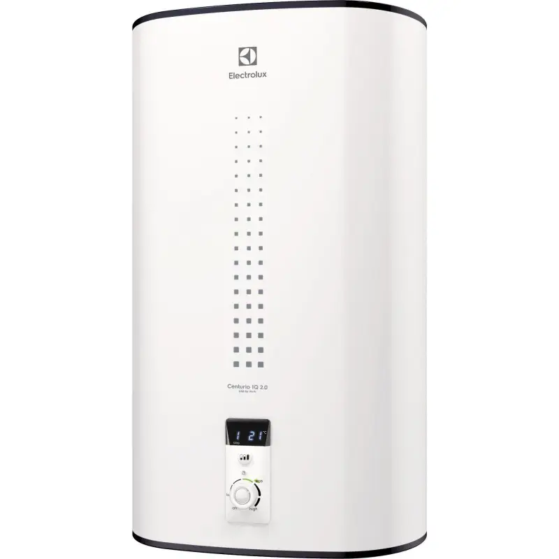 Таймер: Да, Дисплей: Есть, Предохранительный клапан: Да, Режим предотвращения замерзания: Да, УЗО: Да, Объем: 80 л, Цвет: Белый, Защита от перегрева: Да, Класс пылевлагозащищенности: IPX4, Максимальная температура воды: 75 °С, Количество режимов нагрева: 3, Точность установки температуры: 1, 0 °С, Габариты (ВхШхГ): 0, 86*0, 555*0, 35 м, Область применения: Бытовое оборудование (для домашнего использования), Форма: Прямоугольная, Время нагрева воды до 75°С: 180 мин, Гарантийный документ: Гарантийный талон, Защита от включения без воды: Да, Защита от накипи: Магниевый анод, Индикация включения: Да, Индикация температуры нагрева: Да, Макс. потребляемая мощность: 2 кВт, Материал бака: Нержавеющая сталь, Набор крепежных элементов в комплекте: Да, Подсветка дисплея: Да, Расчетное количество человек для принятия душа (при среднем расходе): 3, Регулировка температуры нагрева: Да (механический регулятор), Резьба входного патрубка: 1/2 ", Резьба выходного патрубка: 1/2 ", Серия: Centurio IQ 2.0, Сетевой кабель с вилкой: Да, Система самодиагностики неисправности: Нет, Система сухих ТЭНов: Да, Ступени мощности нагрева: 0, 70 / 1, 30 / 2, 00, USB-разъем: Да, Режим экономии: Опция доступна при управлении через мобильное приложение, Система санитарной обработки воды: Bacteria stop system, Страна: Китай, Ширина, см: 35, Высота, см: 86, Вес, кг: 21, 2, Длина, см: 55, 5, Wi-Fi: Опция, Управление: Электронное, Напряжение сети: 220-240 В (однофазный), Вариант монтажа: Вертикальный, горизонтальный, Способ крепления: Настенный, Гарантийный срок: 2 года На официальном сайте интернет-магазина SDM Climate Вы найдете большой ассортимент климатического оборудования для квартиры, дома или офиса, в том числе Накопительные электрические водонагреватели. Купить товар Электрический накопительный водонагреватель Electrolux EWH 80 Centurio IQ 2.0 (производство Electrolux) можно из наличия или под заказ с доставкой и установкой по Москве, Московской области, также в регионы РФ. Возникли вопросы при выборе? Наши специалисты подберут оборудование по цене, производительности и характеристикам +7 (495) 320-00-44