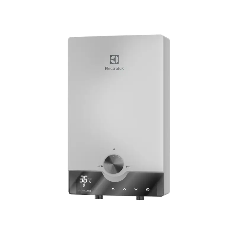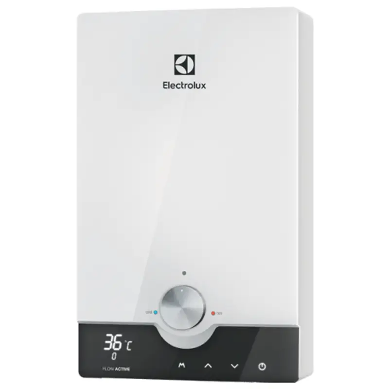 Electrolux NPX 8 Flow Active 2.0 представляет собой проточный водонагреватель, имеющий большую производительность (до 4,2 л/мин) и позволяющий jceotcndkznm нагрев одновременно в нескольких точках. Он подойдет для обеспечения горячей водой квартир, домов, дач или офисов. Прибор относится к серии Flow Active, характеризующейся элегантным сдержанным дизайном. Устройства серии имеют корпус белого цвета прямоугольной формы со скругленными углами, серым круглым регулятором потока воды и сенсорным LED-дисплеем в виде черной полосы. На экране отображаются основные показатели текущего состояния прибора: температура, поток воды, режим работы.